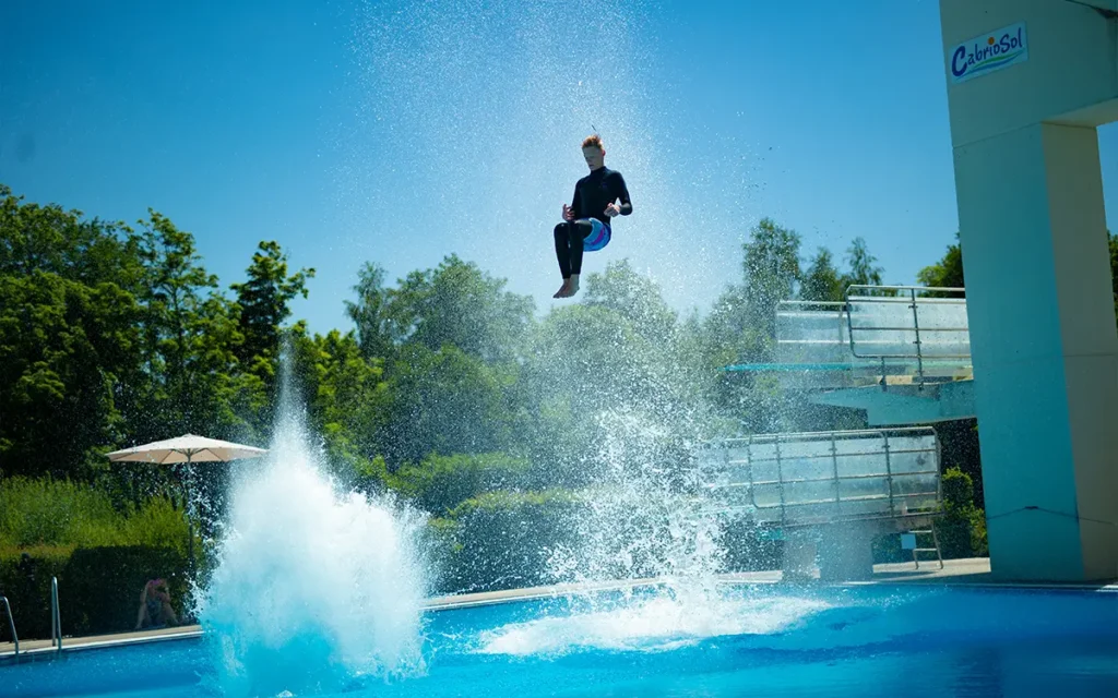 Wir öffnen unser Freibad für euch! Ab Mitte Mai bis zum Ende der Sommerferien wächst das CabrioSol um 15.000 qm Liegewiese und zahlreiche Attraktionen an Land und im Wasser. Genug vom Trubel? Schattige Plätze unter Bäumen, Sonnensegeln & Sonnenschirmen und zahlreiche Liegestühle laden zu entspannten Tagträumen ein.